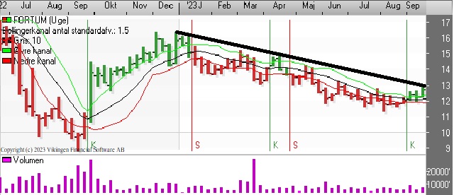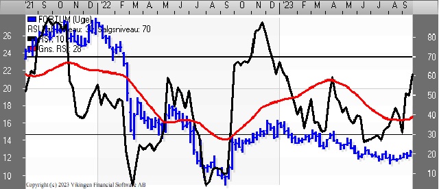 Teknisk er der etableret et købssignal i kursgrafen med de glidende gennemsnit på 8 og 24 dage i slutningen af august. Bollingerkanalen etablerede et købssignal i slutningen af august.