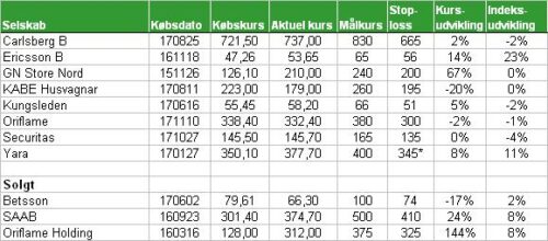 Nordisk portefølje KABE Husvägnar og Ericsson er sat på salgslisten. Hæver stop-loss på Yara.