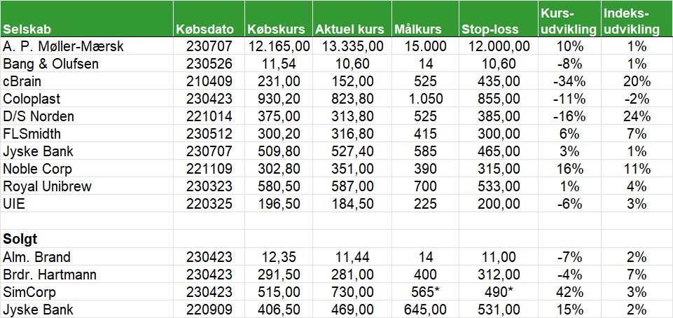 Den danske portefølje har år til dato givet et afkast på 4,2 pct. mod C25-indekset som har givet et afkast på 5,81 pct. På salgslisten er cBrain, Coloplast, D/S Norden og UIE.