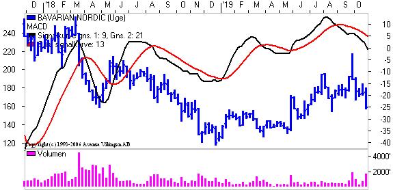 Teknisk betød mandagens meddelelse, at der er etableret et salgssignal i Bollingerkanalen på ugebasis og det lange glidende gennemsnit bliver testet som en støttelinie i øjeblikket. Faldet i aktiekursen har trukket ned i de tre indikationsmodeller på ugebasis. RSI er i niveauet 42-44 og MACD har ramt 0.