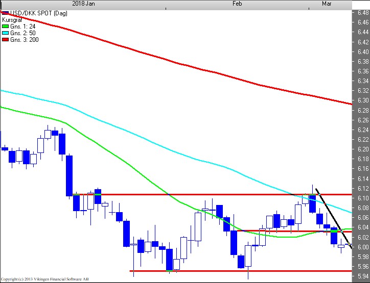 USD/DKK Teknisk chart og vurdering