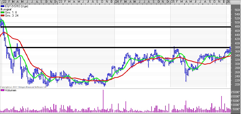 Bliver det et børsnoteringsår? EQT har over 300 selskaber i porteføljen, og det bliver interessant at se, hvor mange de vælger at give slip på. Flere børser i verden er allerede steget med 3-6 pct. Det svenske marked har ramt en ny all time high, og det samme ses i tyske DAX.