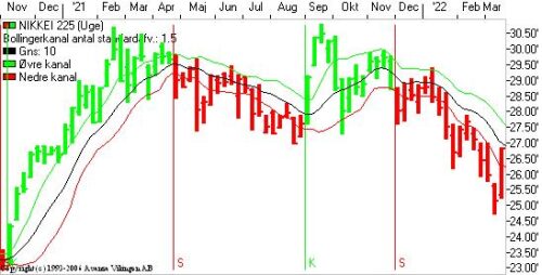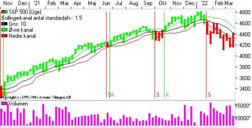 På ugebasis har signalerne endnu ikke indfundet sig, da Bollingerkanalens øvre modstandslinie ligger i niveauet 290, mens det lange glidende gennemsnit på 24 uger ligger i niveauet 300.