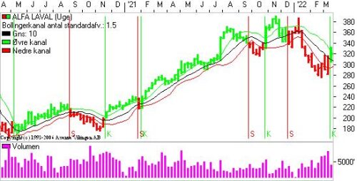 Alfa Laval toppede i midten af november i niveauet 380-390 og mandag blev aktien handlet i niveauet 311,4-317,40. På dagsniveauet er der etableret et nyt købssignal for 2 dage siden. De glidende gennemsnit har etableret et ”Golden Cross” for 10 dage siden.