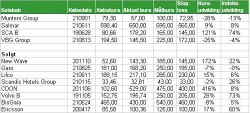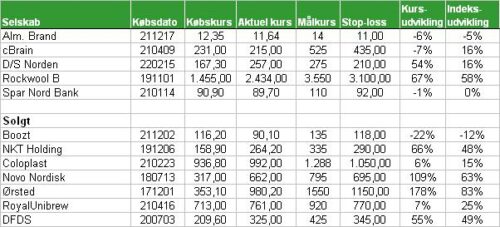 Afkastet i den danske portefølje år til dato -9,0 pct., mod C25-indekset, som i år til dato har givet et afkast på -9,0 pct. Afvent udviklingen.