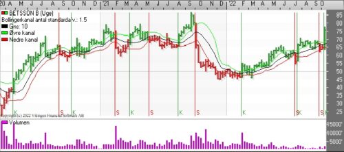 Betsson fandt en bund ved årsskiftet i niveauet 45-50 og siden midten af juli er aktiekursen handlet i niveauet 65-70. Torsdag opjusterede selskabet forventningerne, hvilket fik kursen op i 75.