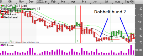 Teknisk ser det ud til, at der er etableret en dobbelt bundformation i niveauet 72-75 og holder det, er nærmeste modstandsniveau omkring 100 og herefter i niveauet 115, mens der er støtte i niveauet 70 og herefter i niveauet 63.