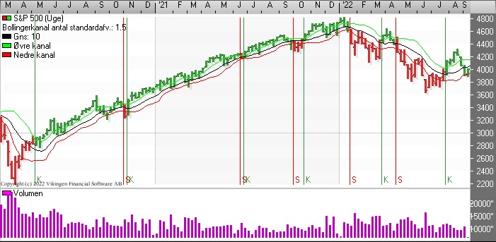 Aktien er faldet tilbage de sidste 2 uger, og der er etableret salgssignal på både dags- og ugeniveauet. På dagsniveauet har der været salgssignal i Bollingerkanalen siden slutningen af august. De glidende gennemsnit på 8 og 24 dage har etableret et Death Cross i midten af august.