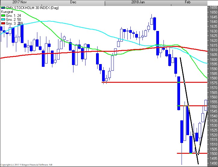 Ser BørsUdsigten på S30 indekset 1.557 (plus 0,9 pct. (14,21 point), er der tale om en langsigtet nedtrend. Tertiært / spekulativt, fik vi bekræftet købesignalet fra 1.522 niveauet ved bruddet af 1.550 niveauet. EXIT alle positioner ved brud af 1.500 niveauet.