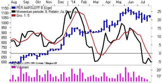 Ved indgangen til juni var Per Aarsleff-aktie i kurs 1150, men er siden faldet tilbage til 1074. Faldet har sendt RSI ned og tæt på det oversolgte niveau. MACD er ligeledes faldet tilbage og det samme er Momentum på ugebasis.