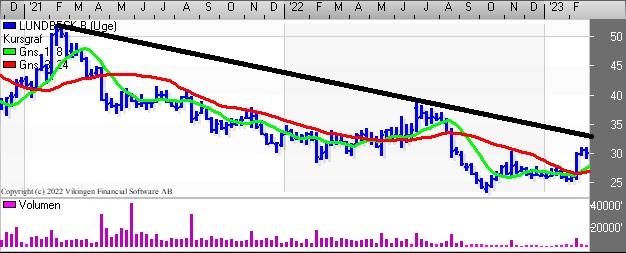 Nærmeste modstandsniveau er ved niveauet 30-31 som blev testet som støtteniveau 4 gange fra december til maj 2022. Næste modstandsniveau er herefter ved 38, mens der er støtte i niveauet 28 og herefter i niveauet 24. Køb ved brud af niveauet 31. Fundamental-modellen indikerer en fair værdi i niveauet omkring kurs 40, hvilket giver et potentiale i aktien på over 33 pct. Aktien er på kandidatbænken. Jeg ejer aktier i begge selskaber.