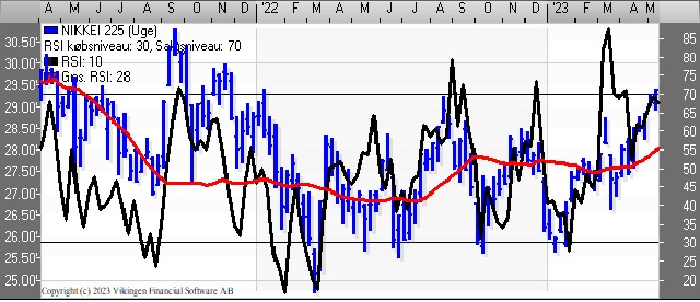 Strategi: Divergens mellem de tre indikationsmodeller Momentum, MACD og RSI gør, at vi fastholder vores holdanbefaling på det japanske marked.