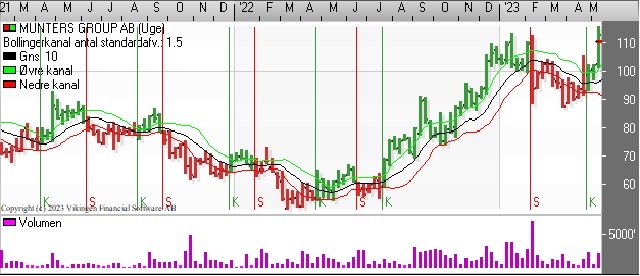 Munters Group har etableret købssignal på dagsniveauet i midten af april i både Bollingerkanalen og kursgrafen. Gappet fra det skuffende årsregnskab i februar er levet lukket i denne uge.