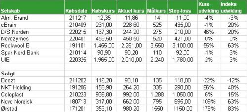 Afkastet i den danske portefølje år til dato -10,0 pct., mod C25-indekset, som år til dato har givet et afkast på -8,7 pct. Tager Novozymes med i porteføljen.