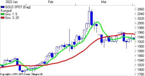 Brent Spot siver igen, og efter nedlukningerne i Kina og i USA har man åbnet op for de strategiske lagre. Den faldende efterspørgsel fra Kina kan være med til dæmpe inflationen. Nordsø-olien er faldet tilbage til 105. Tilbagefaldet betyder, at der er etableret salgssignal på dagsniveauet, mens købssignalerne fortsat er intakt på ugebasis. RSI er faldet tilbage til niveauet 62.