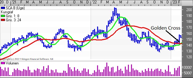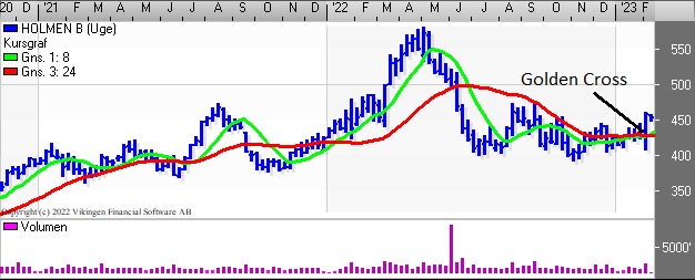 Holmen etablerede et købssignal i begyndelsen af januar og de glidende gennemsnit på 8 og 24 dage etablerede et Golden Cross i begyndelsen af januar.