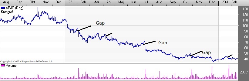 Blandt de store svenske er det selskaberne Arjo, Axfood og Intrum som har 3 gaps. I Mid cap Clas Ohlson og Dustin Group.