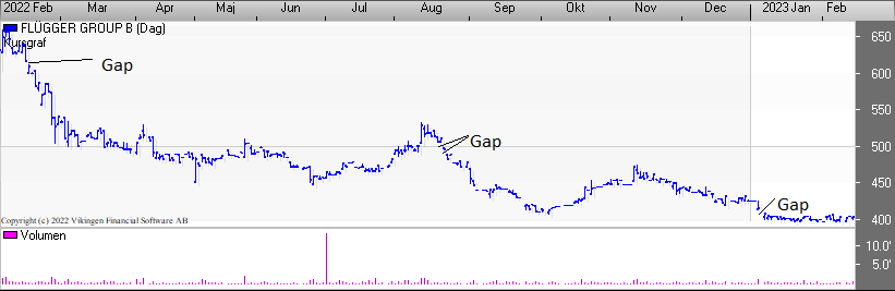 En dårlig nyhed eller et stort udbytte kan skabe et stort hul i grafen. De fleste er på dagsniveauet, mens enkelte kan ses i ugegrafen.