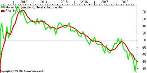 Momentum på månedsniveauet har etableret en bund og også den langsigtede tendens ser ligeledes interessant ud. Det glidende gennemsnit i modellen er tæt på at blive brudt nedefra, hvilket vil bekræfte, at der muligvis er en trendvending på vej.