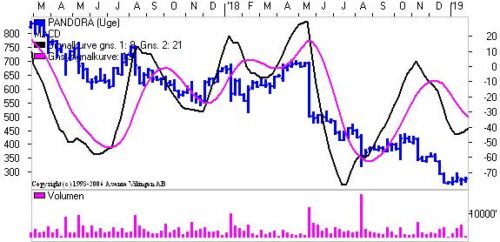 Pandora forsøger igen at finde en bundformation på niveauet 260-280. På dagsniveauet betyder den vandrette formation, at der er etableret købssignal i Bollingerkanalen og de glidende gennemsnit har etableret et ”Golden Cross” på dagsniveauet.