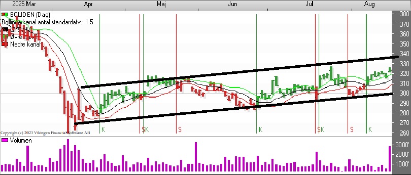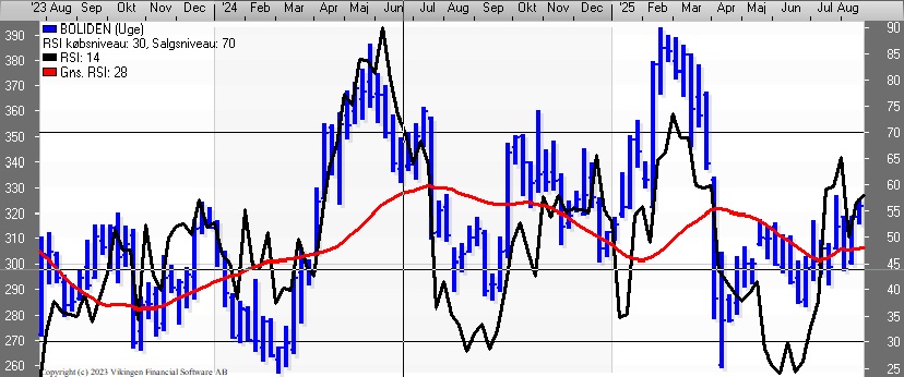 Nærmeste modstandsniveau er ved 360 og herefter i 390-395, mens der er støtte ved niveauet 295 og derefter 260. Aktien ser interessant ud på det nuværende niveau.