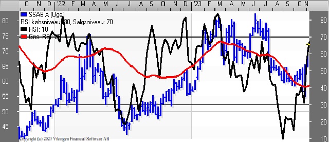 Der er en positiv tendens i de tre indikationsmodeller på ugebasis. RSI er over 60. Momentum er brudt igennem det glidende gennemsnit nedefra. MACD er ligeledes i en stigende tendens, men er endnu ikke over middelværdien 0 på ugebasis.