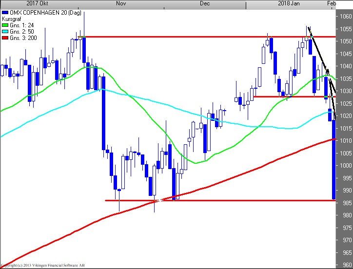 BørsUdsigten noterer, at den primære trend blev brudt, ved bruddet af 1.010 niveauet. Der skal en stor bounce til på 25 point, for at annullere ”salgssignalet”.