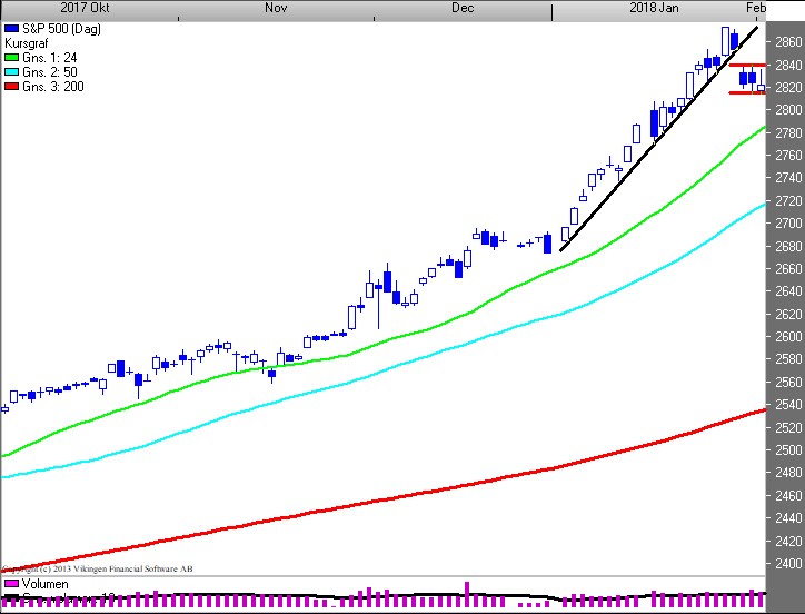 Fundamentalt vurderer BørsUdsigten, at der fortsat er grundlag for stigninger på grund af den amerikanske skattereform. Nedskrivningerne har ingen likviditetsmæssig effekt; hvorfor de heller ikke får den store indflydelse på aktiekurserne. BørsUdsigten vurderer, at der samles kræfter i en konsolidering før, der er ny styrke til et angreb på 2.870 og efterfølgende 3.000 niveauet.