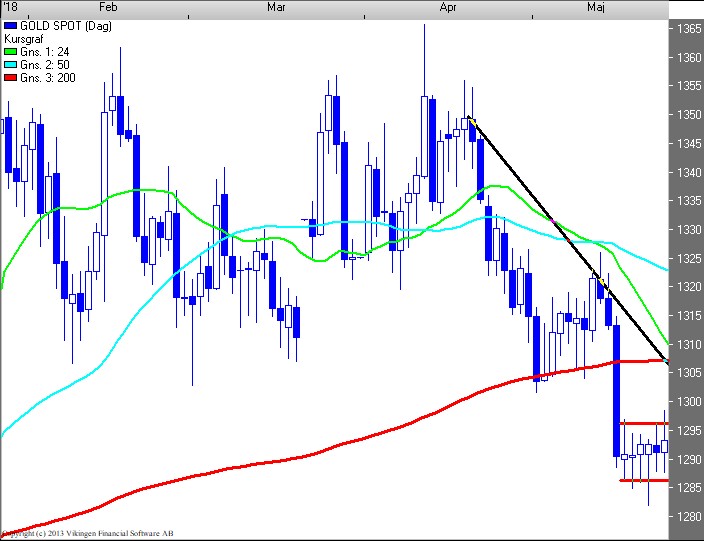 Ser BørsUdsigten på dagschartet for guld (1.295), er der tale om en fortsat sidelæns konsolidering.