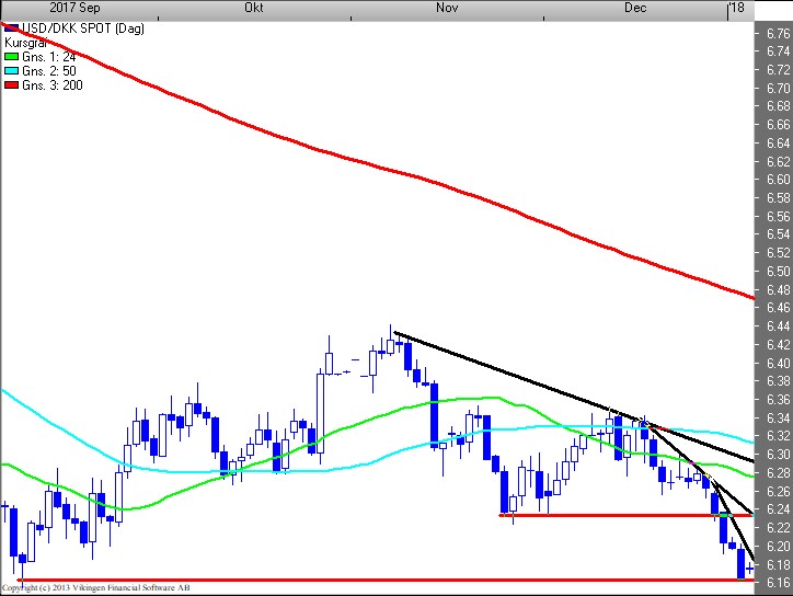 USD/DKK Teknisk chart og vurdering