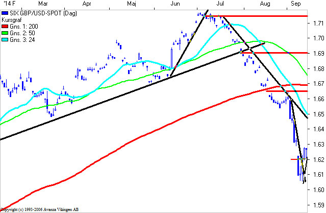 BørsUdsigten vurderer at hele nedturen overvejende kan tilskrives usikkerheden omkring det skotske valg om selvstændighed, selvom USD generelt er blevet styrket. Valutamarkedet, vædder for øjeblikket på et JAtil uafhængighed.