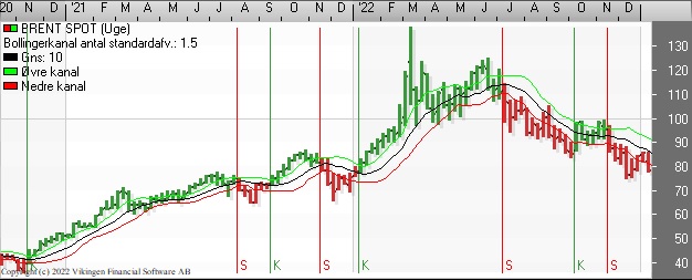 Brent er handlet under 80 i denne uge. Faldet har efterladt grafen med et gap i niveauet 82-86 som over tid skal lukkes. Det giver mulighed for at blive eksponeret mod olieselskaberne, hvis man ikke allerede har et i porteføljen.
