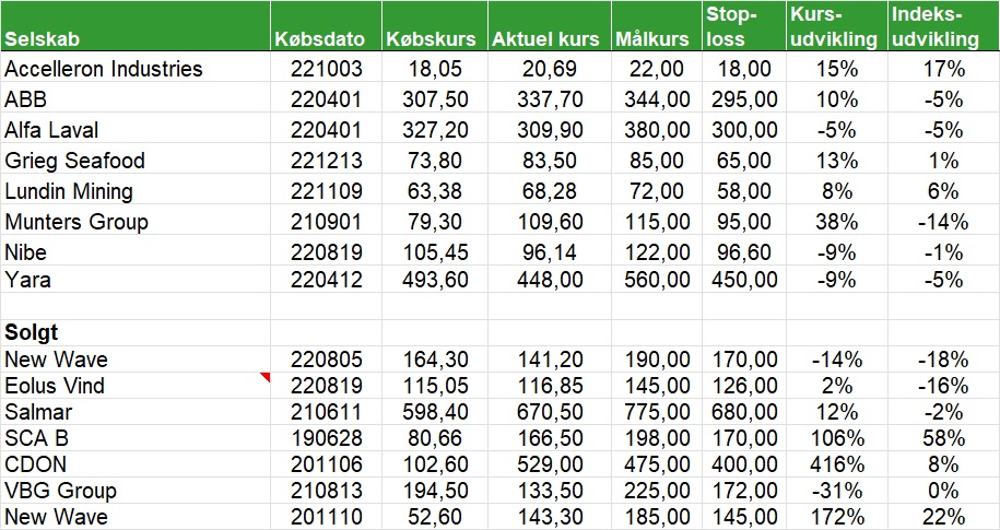 Den danske portefølje har år til dato givet et afkast på 0,9 pct. mod C25 indekset som har givet et afkast på 0,6 pct.