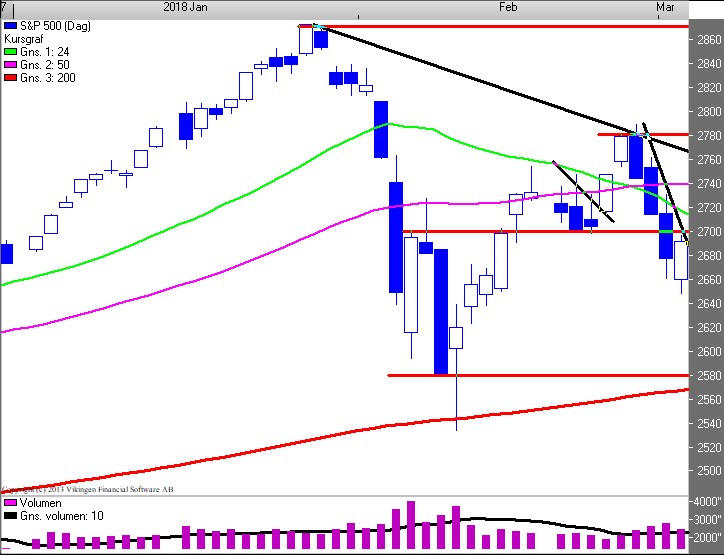 Ser BørsUdsigten på dagschartet for S&P500 (2.691), ligger vi i en bekræftet tertiær og sekundær nedtrend.