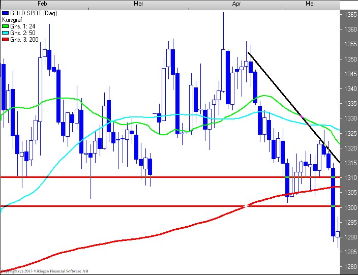 Ser BørsUdsigten på dagschartet for guld (1.292), lykkedes det ikke at neutralisere EXIT signalet og bruddet af støttelinierne 1.310 – 05 – 00.
