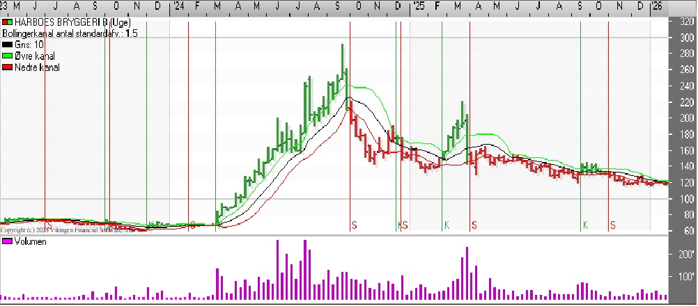 Harboes Bryggeri-aktien har været i en sivende tendens i foråret 2025, hvor aktien tog et mindre hop fra 130 op til 220.