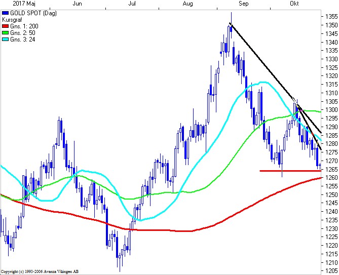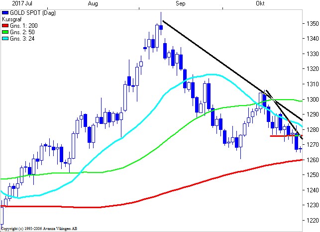 Ser BørsUdsigten på dagschartet for guld (1.267), blev opbremsningen meget kort, og der blev udløst et spekulativt salgssignal ved brud af 1.278 niveauet, og den negative trend blev genoptaget.
