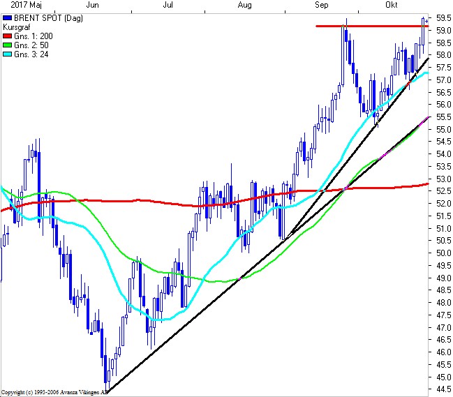 Ser BørsUdsigten på dagschartet for UK Brentkvaliteten (59,4), bekræfter bruddet af modstanden i 59 niveauet den underliggende positive trend / købesignalet.