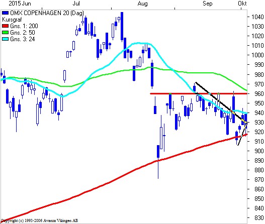 BørsUdsigten har købt har hjemtaget gevinst ved bruddet af 950 niveauet. Genkøb ved brud af 960 niveauet. Der åbnes en shortposition ved brud af 917 niveauet.