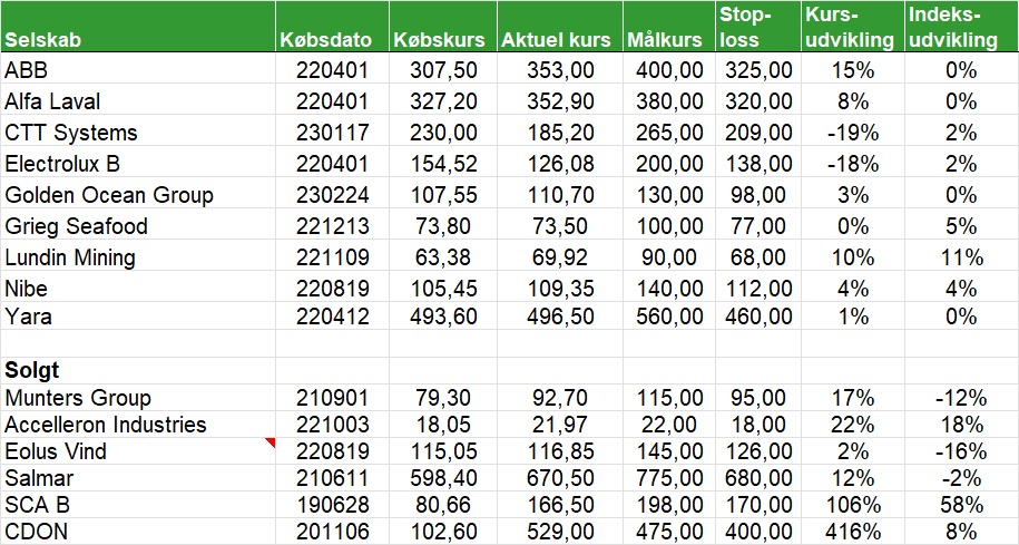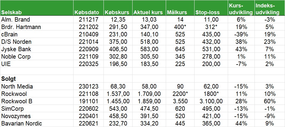 Den danske portefølje har år til dato givet et afkast på 8,8 pct. mod C25-indekset som har givet et afkast på 5,28 pct. På salgslisten er cBrain og UIE. Har hævet stop-loss og målkursen for Brdr. Hartmann.