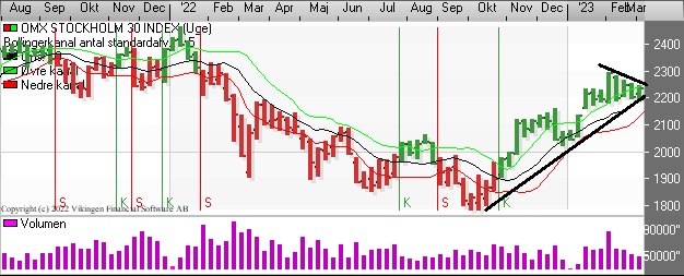 OMX Stockholm 30 bevæger sig fortsat vandret i niveauet 2200-2300 og det har stået på siden begyndelsen af januar.
